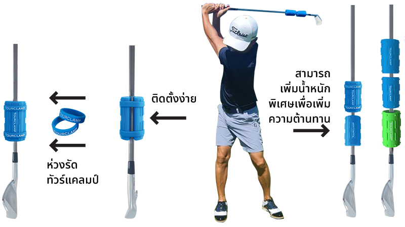 วัสดุซิลิโคนช่วยให้ ทัวร์แคลมป์ ยึดติดกับที่ใดก็ได้บนก้านไม้กอล์ฟ การใช้